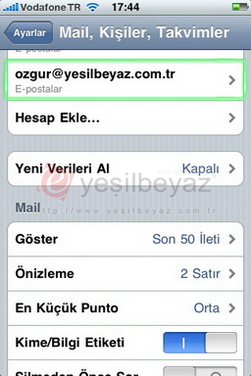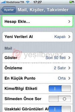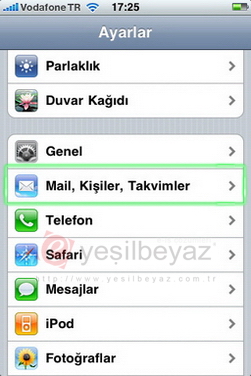 2- "Mail, Kişiler, Takvimler" menüsüne girin