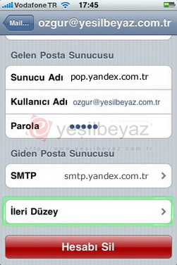 Tekrar "İleri Düzey" menüsüne girin ve Gelen Posta Ayarlarının;