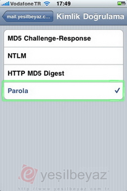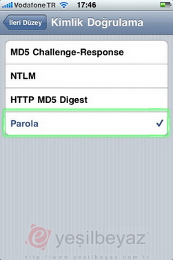 10- Kimlik Doğrulama şeklinin Parola olarak ayarlayın.