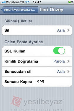 Gelen Posta Sunucusu (Pop) bilgilerinizi;