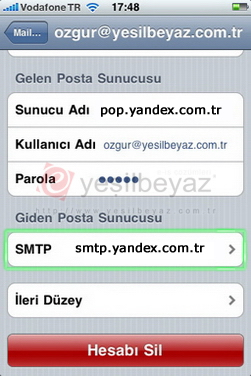 6- Gelen Posta Sunucusu (Smtp) bilgilerinizi;