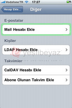3- "Hesap Ekle" menüsüne girin ve "Diğer" seçeneğini seçin